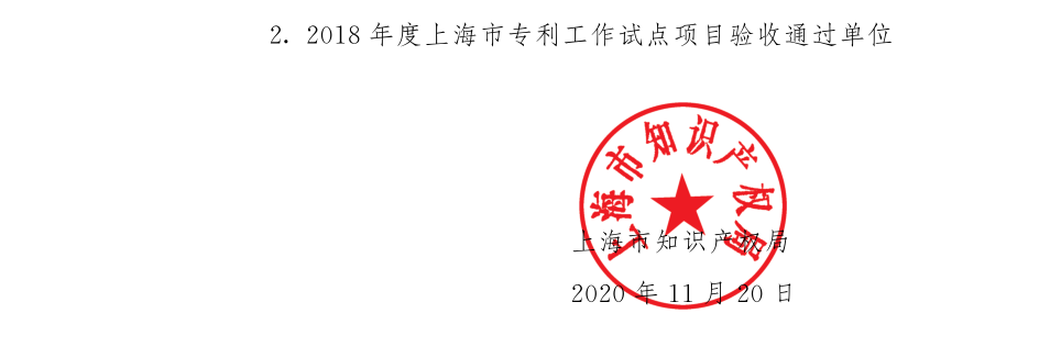 近期,上海市知識產權局公布了2018年度上海市專利工作試點示范項目驗收單位名單。