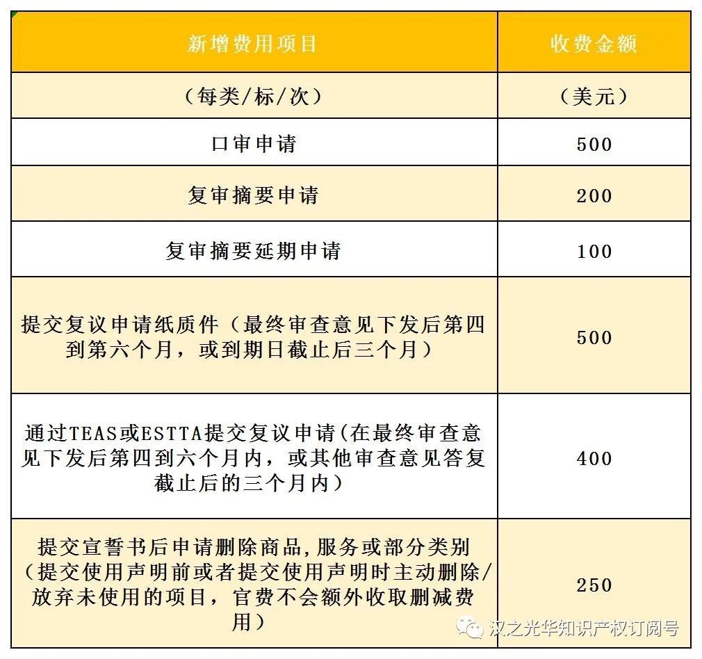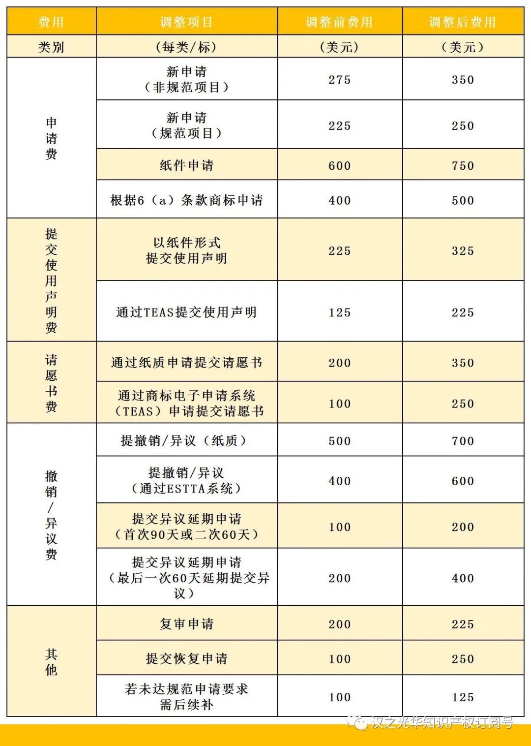 申請費、提交使用聲明費、請愿書費、商標撤銷/異議等費用增長。