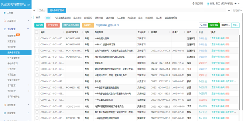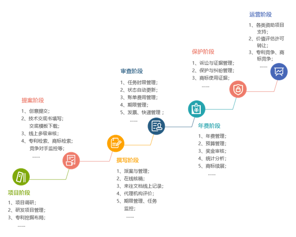 漢知寶企業知識產權管理平臺https://www.hanzhibao.cn/),聚焦項目(產品/技術)中的知識產權,具備專業和人性化的專利、商標、軟著管理功能,從創意挖掘到申請管理各個階段,到競爭、運營階段,進行全生命周期管理;關注任務時限、年費監控等費用管理、流程管理;便利研發人員的技術交底、競爭對手監控;極大提升企業知識產權工作效率和工作能力。