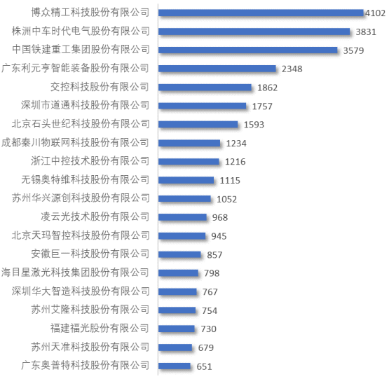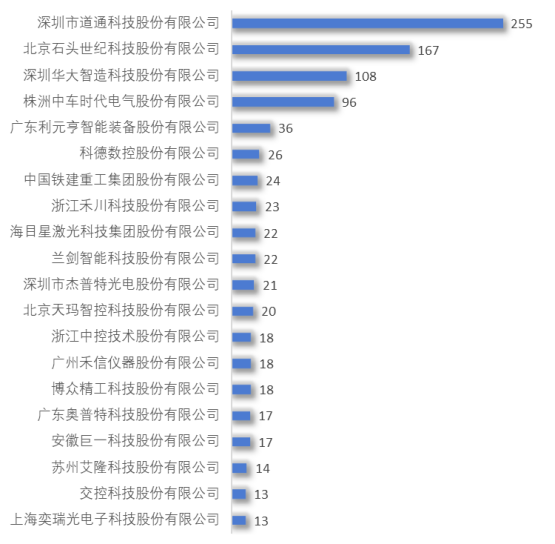 為聚焦科創板高端裝備行業的企業專利情況,本文篩選收集了受理時間排名前100的上市企業,對這些企業的專利情況進行分析。