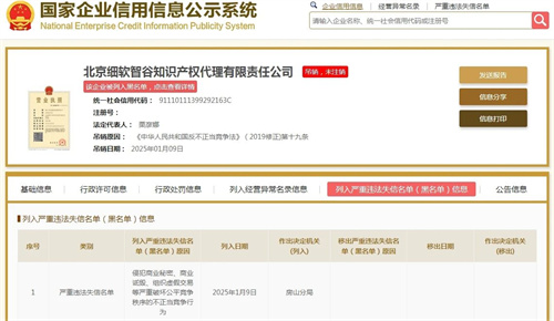 某知識產權平臺因行賄商標審查人員,旗下兩家關聯公司分別于2025年1月9日和1月14日被吊銷執照,直接被列入嚴重違法失信名單。